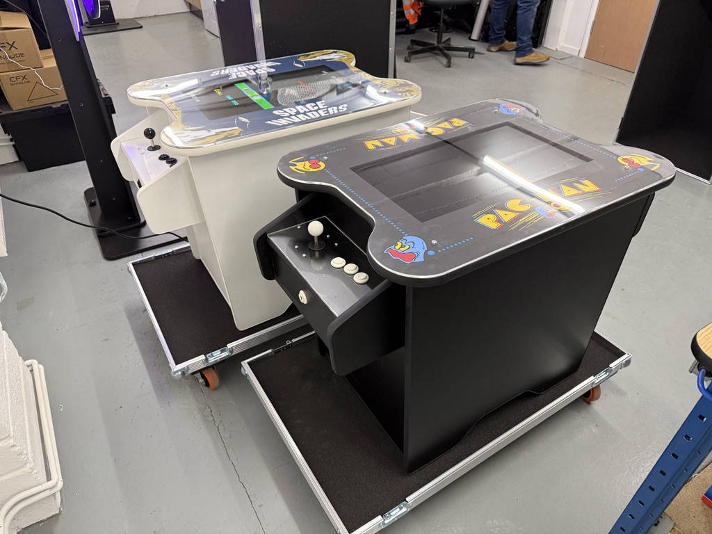 For a more compact and stylish option, we also manufacture cocktail arcade machines and arcade coffee tables. These sit-down designs deliver the same retro gaming experience in a space-saving format, making them ideal for bars, offices, breakout spaces, and hospitality areas. With the option to brand panels directly or add custom CNC-cut graphics, cocktail tables can be tailored to reflect your campaign, company logo, or sponsor branding, turning them into interactive marketing assets as well as fun games.