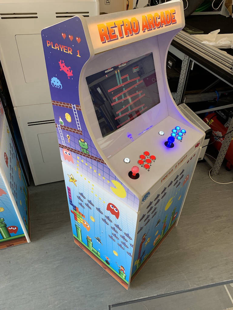 At Game Works Creative, we are proud to be one of the UK’s leading manufacturers of retro arcade machines and custom branded arcade cabinets. Designed for both leisure venues and promotional use, our arcade systems combine the nostalgia of classic 1980s and 1990s gaming with modern reliability and full branding options.